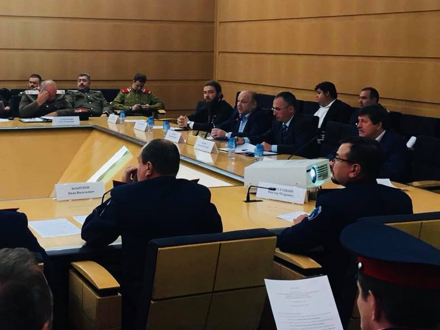 14 сентября 2018 года в здании Правительства Москвы (Новый Арбат, 36А) приняли участие в заседании круглого стола по вопросам взаимодействия общественных объединений казаков с органами государственной власти и участия в общественной жизни страны, организованный Федеральным агентством по делам национальностей и Департаментом национальной политики и межрегиональных связей города Москвы.