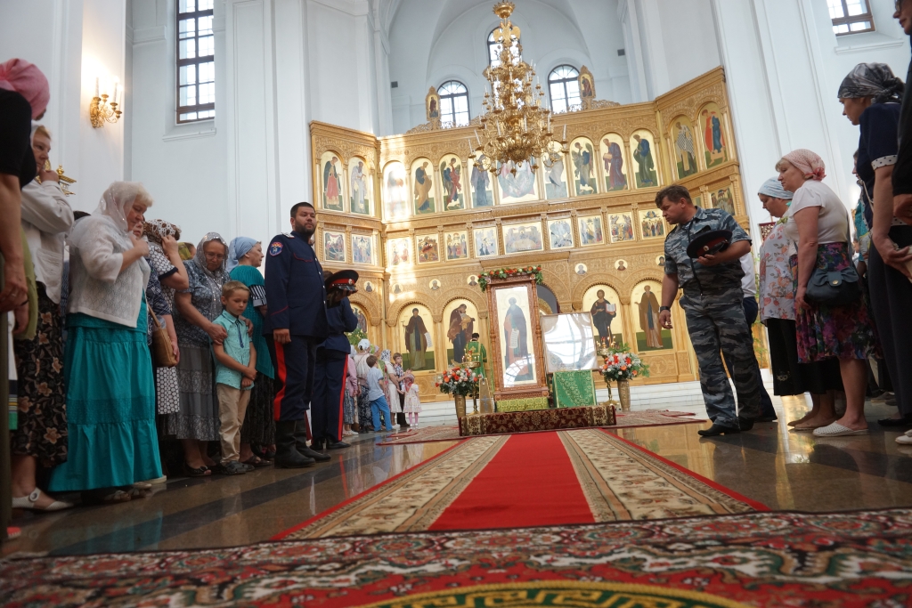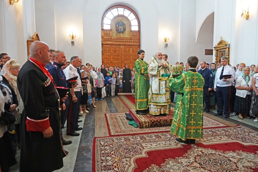 Духовник казачьей общины иерей о. Олег сослужил вместе с местной братией Божественную литургию в день памяти прп. Тихона Калужского, исповедовал и благословил казаков на Причастие.