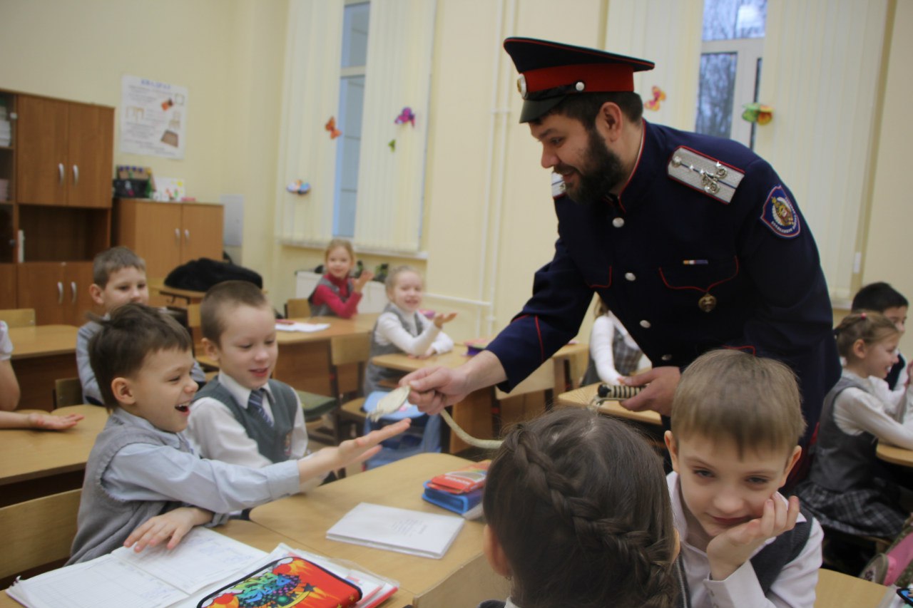 В феврале, ближе ко дню защитника Отечества, казаки Троицкой казачьей общины провели открытый урок во 2А классе в средней общеобразовательной школе №2 г. Троицка. Станичный атаман Сергей Владимирович Серебряков и хуторской атаман Елисеев Валерий Алексеевич рассказали детям об истории зарождения Казачества, его развитии, современном положении дел. В частности, дети узнали о традициях и быте казачьих поселений, о роли казачества в обеспечении безопасности государственных границ, об историческом их значении и вкладе в становление и развитие российской государственности, о героях казачества, защищавших и положивших свою жизнь за Родину. Не без интереса юные слушатели ознакомились с учебными макетами боевого оружия казаков, узнали про историю казачьих шашек (донской и кавказкой), а также нагаек (донской и уральской). Все макеты дети смогли не только разглядеть, но ... Подробнее...Поддержите наш проект!!!